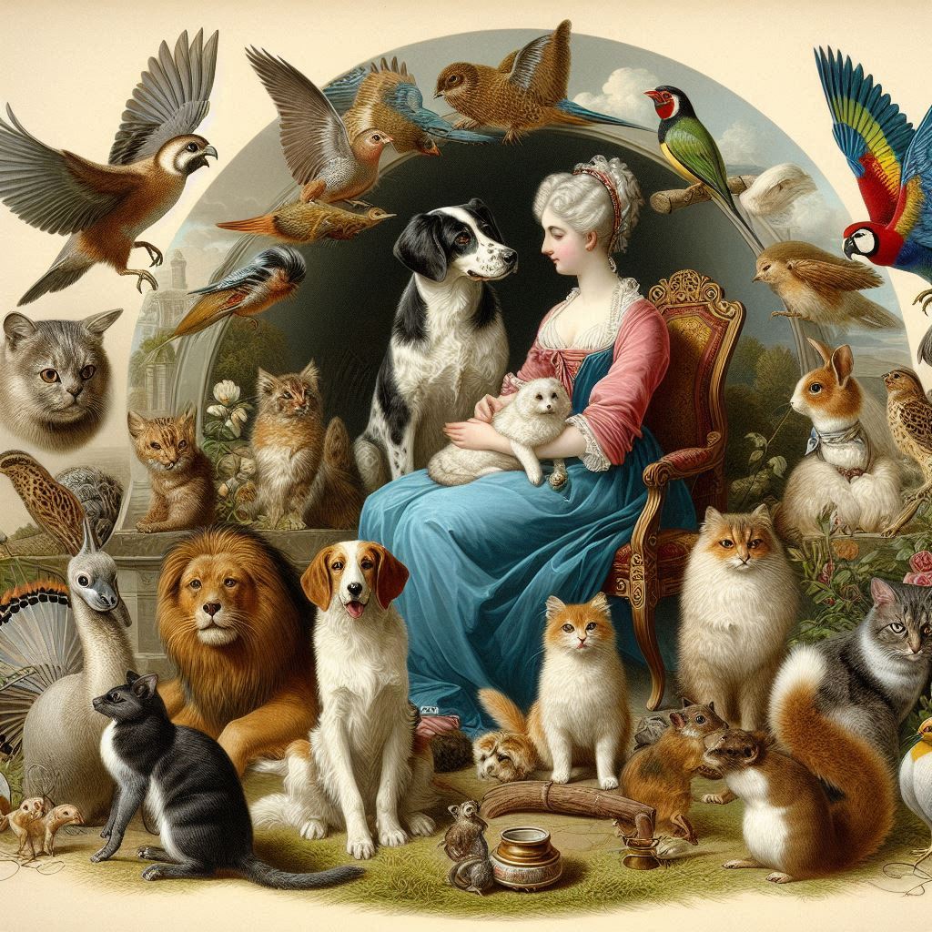 - Parrots: Prized for their ability to mimic human speech, these birds were both entertaining and a symbol of exotic travels.